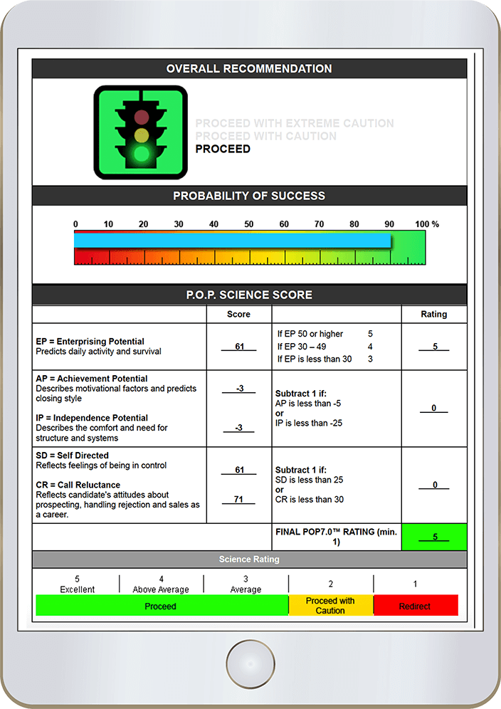 Our Sales and Call Centre POP™ assessments gives you the ability to evaluate each candidate for more than one role – all in the same report and at the one price.